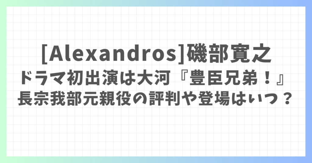 [Alexandros]磯部寛之のドラマ初出演は大河『豊臣兄弟!』長宗我部元親役の評判や登場はいつ?