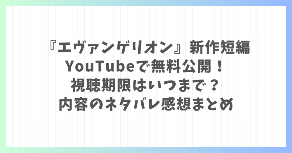 『エヴァンゲリオン』新作短編がYouTubeで無料公開!視聴期限はいつまで?内容のネタバレ感想まとめ