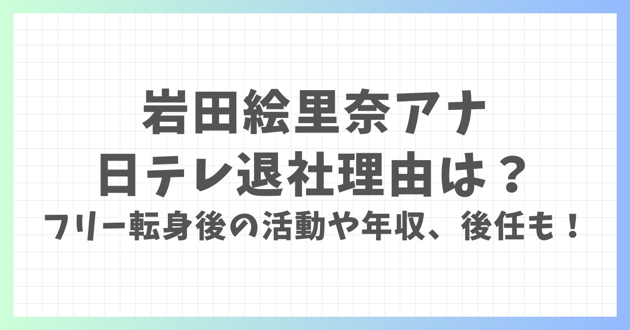 結論から言うと、岩田絵里奈アナの退社理由は、30歳という節目でのステップアップや、より自由な活動環境を求めたためと考えられます。