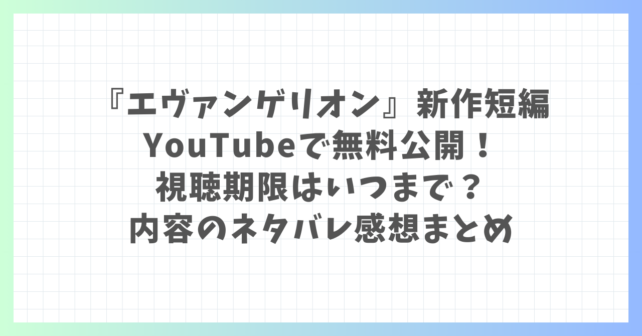 今回は、YouTubeで無料公開されたエヴァンゲリオンの新作短編について、その背景や内容を詳しくお伝えしました。